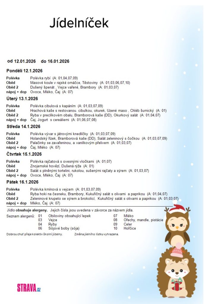 Jídelníček ZŠ